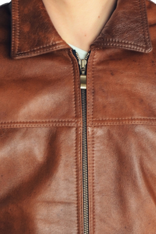 Muška kožna jakna - Bokserica Muška kratka jakna sa renderom na rukavu i dužini.Model ima klasičnu kragnu, kopča se zipom i u predelu struka nalaze se dva džepa sa zipom. Podeli: